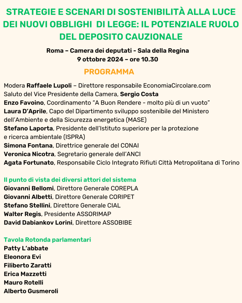 Il deposito cauzionale alla luce del PPWR: un convegno alla Camera dei deputati il 9 ottobre 2024