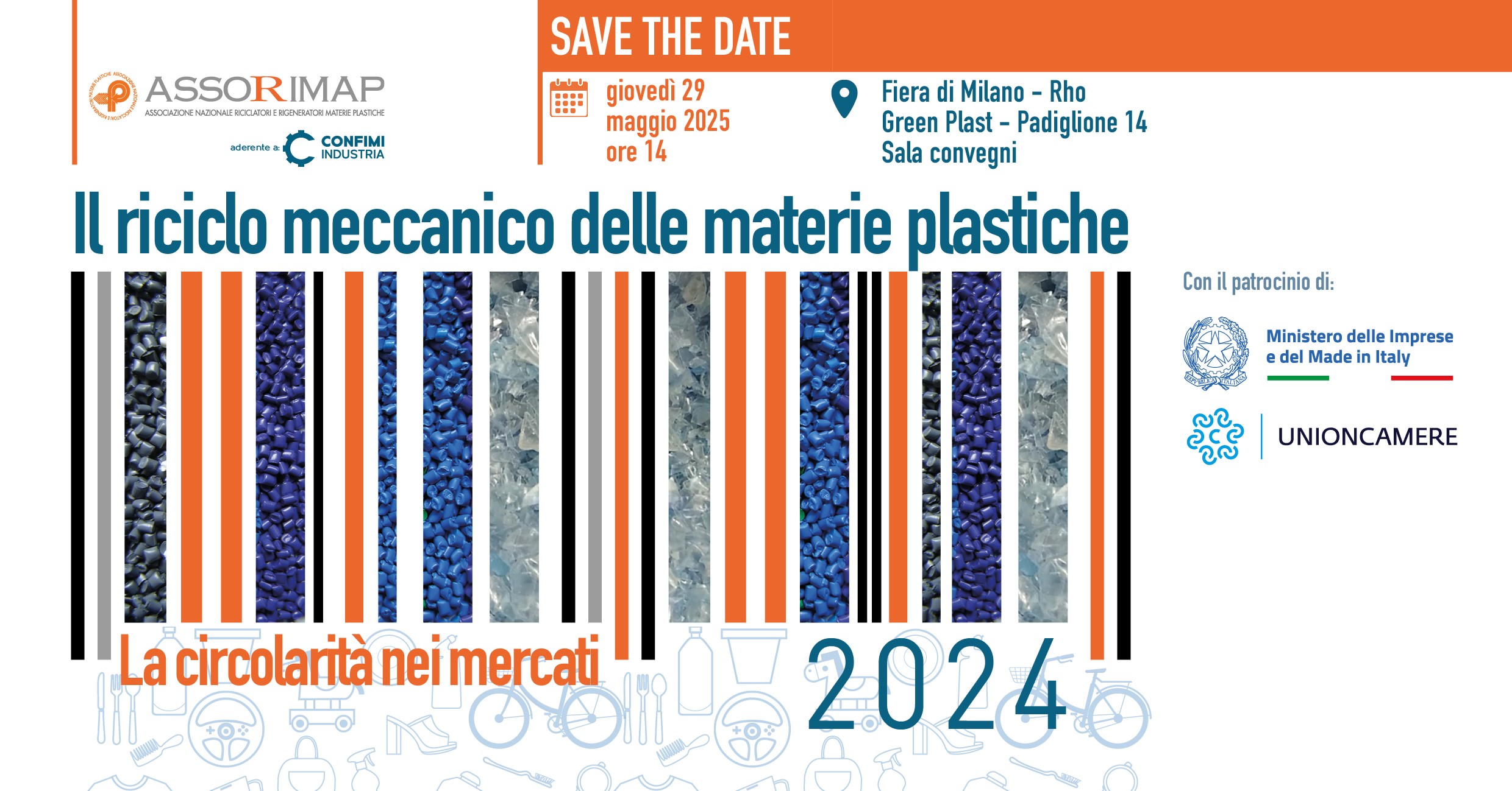 "Il riciclo meccanico delle materie plastiche - dati 2024. La circolarità nei mercati": evento di presentazione del Report ASSORIMAP a Green Plast - Fiera Milano-Rho, 29 maggio 2025 ore 14